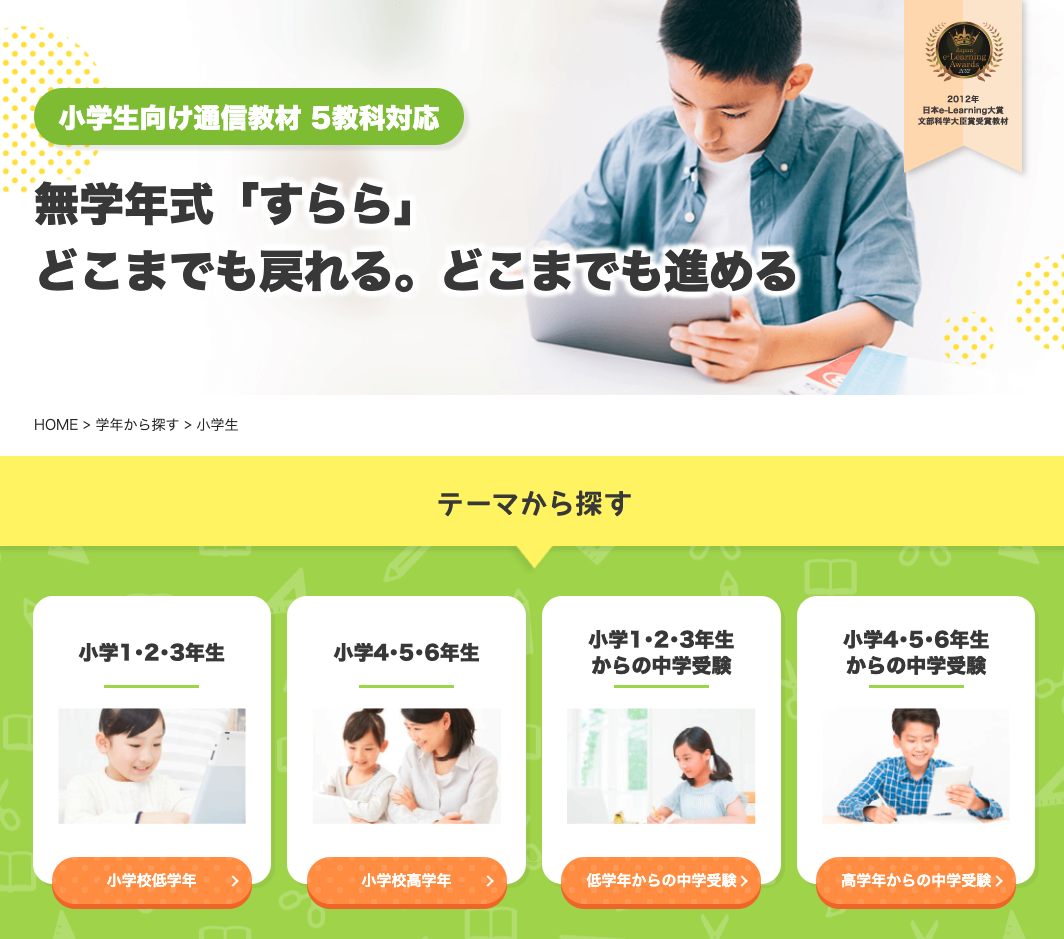 無学年方式を採用し、つまずいたところまで何学年分でもさかのぼって学習できます。